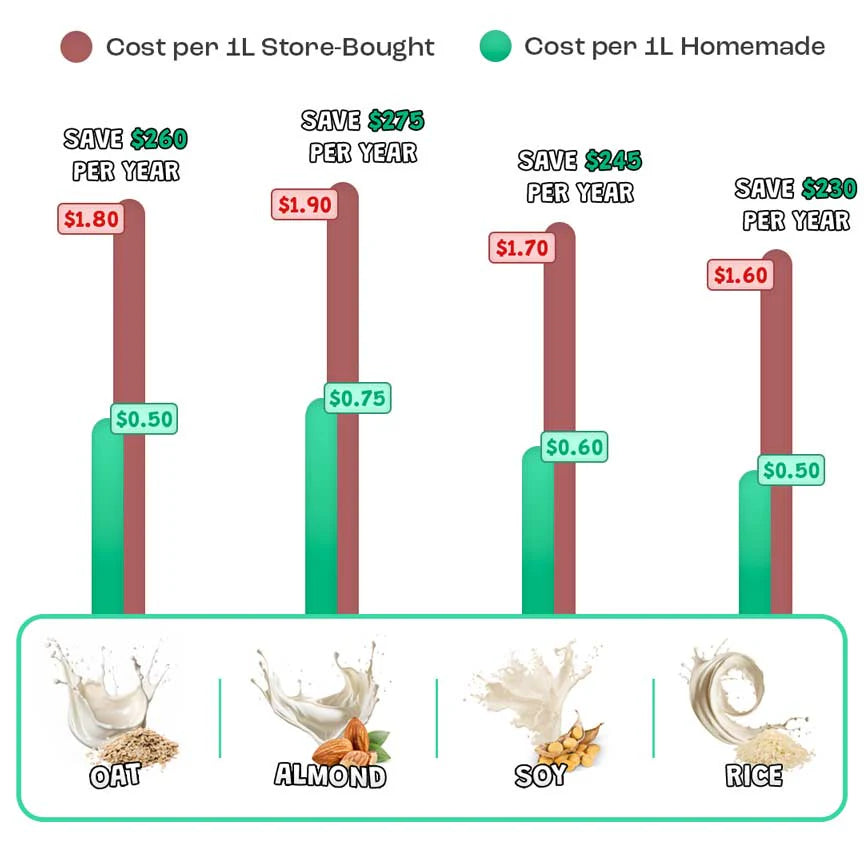Control what goes into your food – Fresh, homemade plant-based milk with no additives or preservatives.
